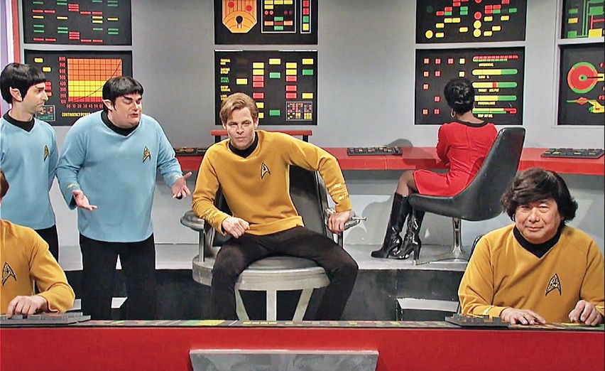 In May, still lacking an Asian cast member after 42 years (one quarter Asian’s not good enough), production designer Akira Yoshimura had to play Mr. Sulu in a “Star Trek” skit just as he’d done off and on dating back to 1976! Yes, the White House skits were hilarious. But come on, your racism is obvious.